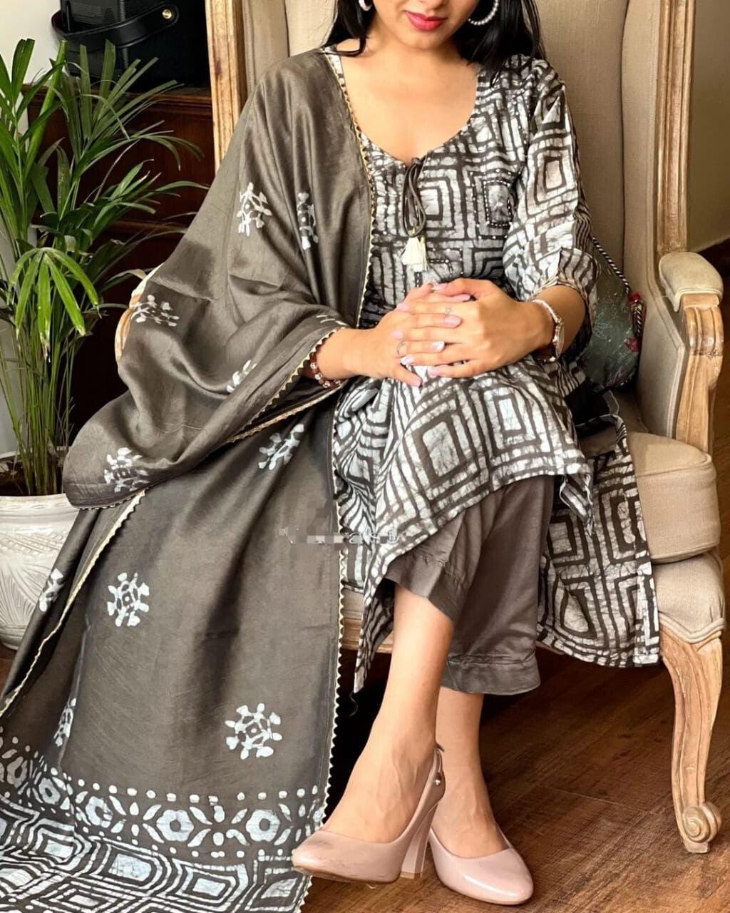 Olive Garden Threadwork A Line Mul Cotton Suit