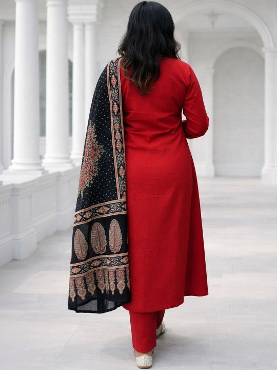 Elevate your ethnic wardrobe with this beautifully crafted kurta set featuring intricate thread embroidery inspired by traditional motifs. The regular-fit kurta showcases detailed needlework that adds sophistication to your everyday style, while the coordinated trousers ensure a polished silhouette. Complete with a matching dupatta, this three-piece ensemble offers versatility for both casual gatherings and festive occasions. Crafted with attention to detail, this set celebrates timeless design with contemporary comfort, making it an essential addition for those who appreciate authentic ethnic fashion.